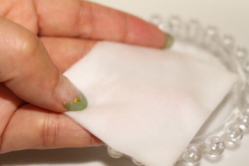 リムーバーをコットンに浸し、皮膚についたカラーの色素を浮かしながら拭き取ります。