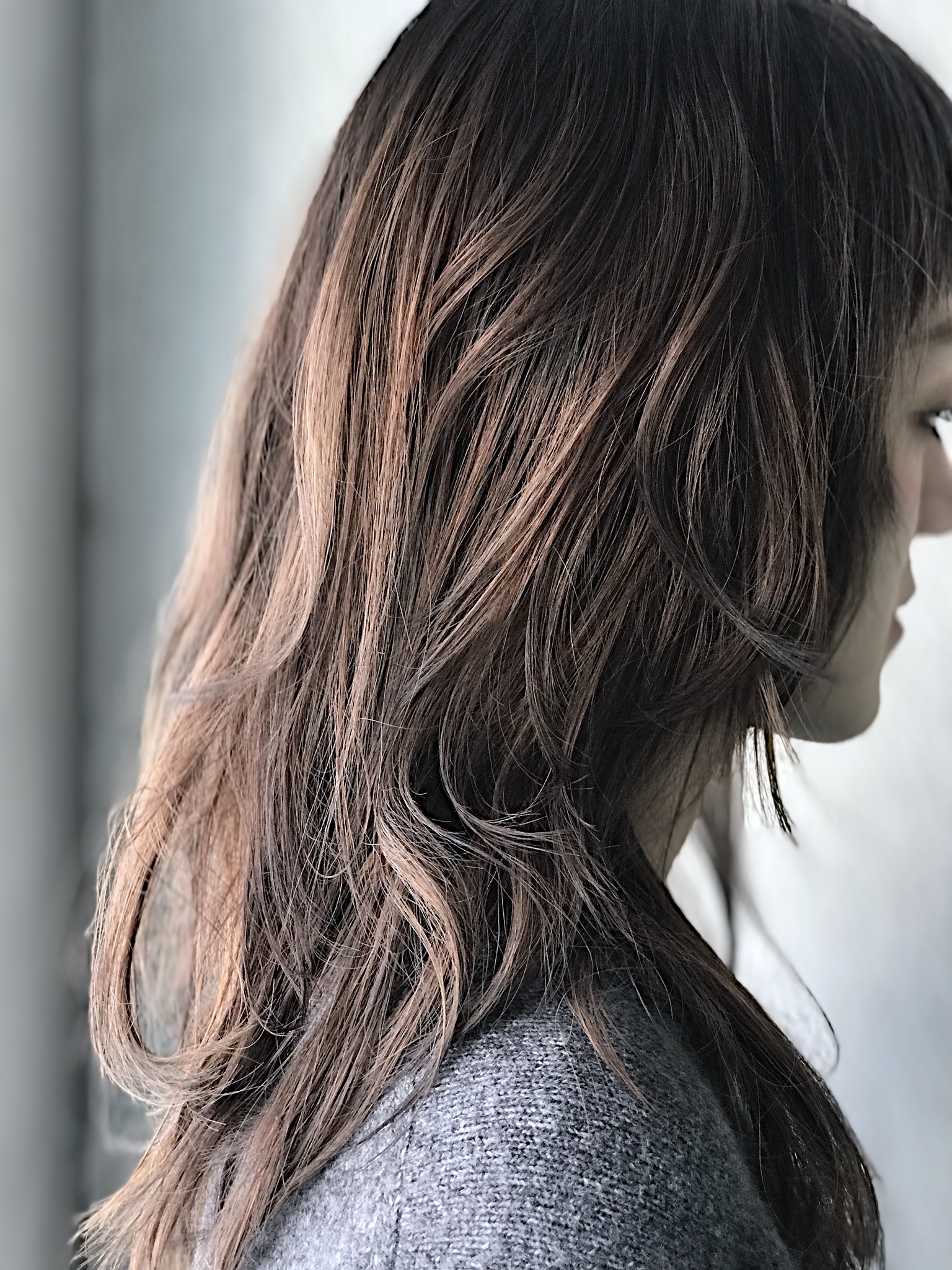 根元はスモークで、しっかり入り毛先はホワイトで、透明感が出ました。