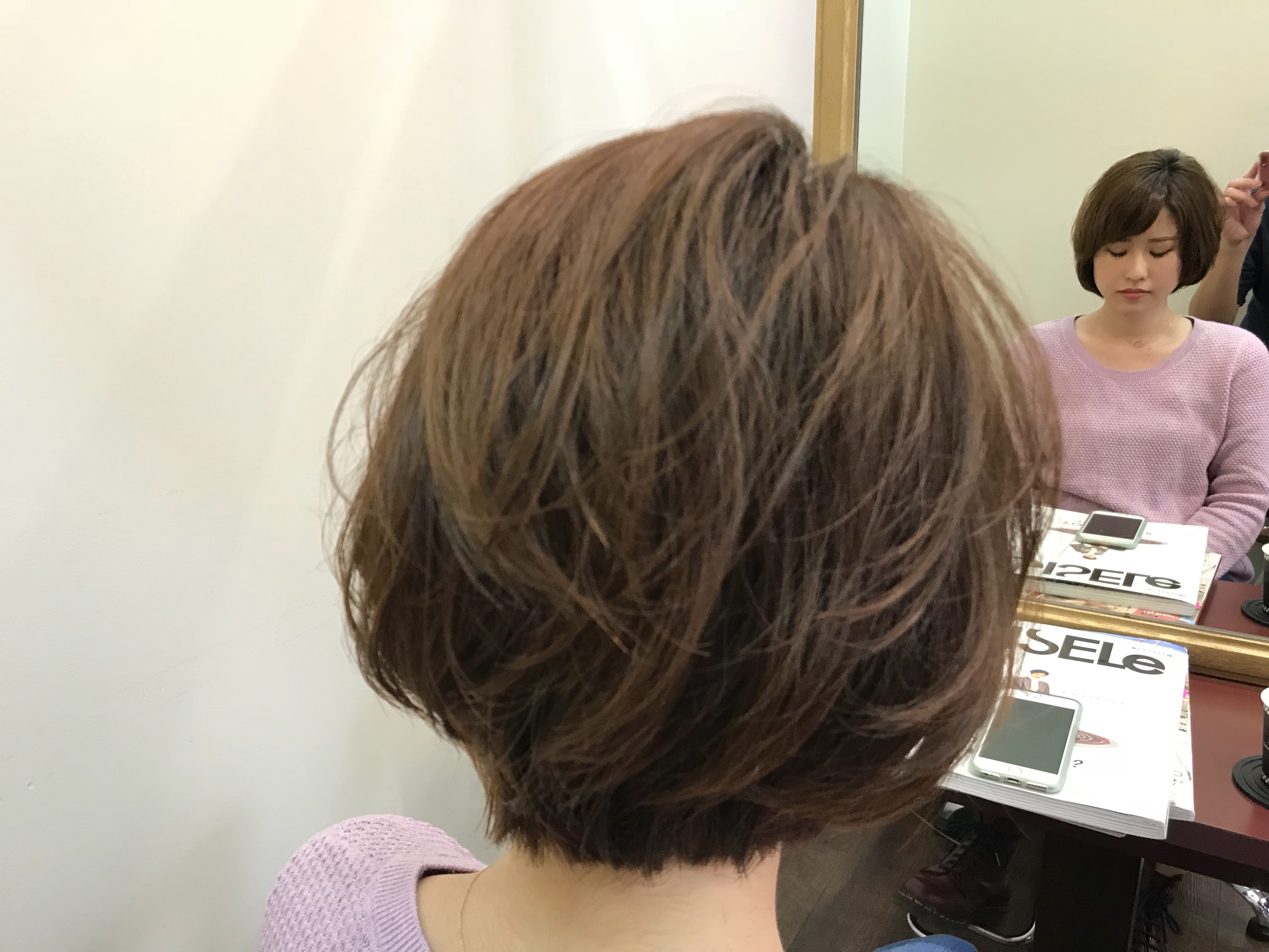 トップにふわっとボリュームを出したい方は、ポイントパーマとベージュ系のカラーがオススメですよ