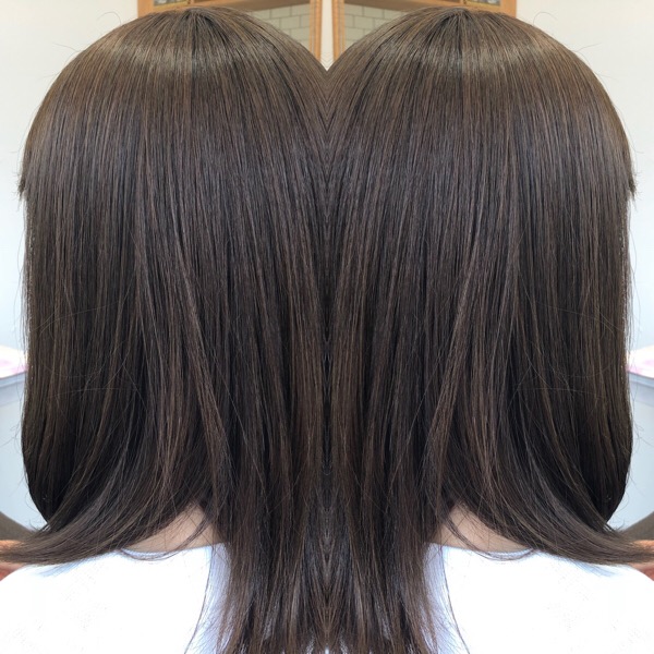ご覧の様に7レベルといった社会人がギリギリ出来る明るいヘアカラーでも、透明感抜群な柔らかな光を与える事が出来ます。