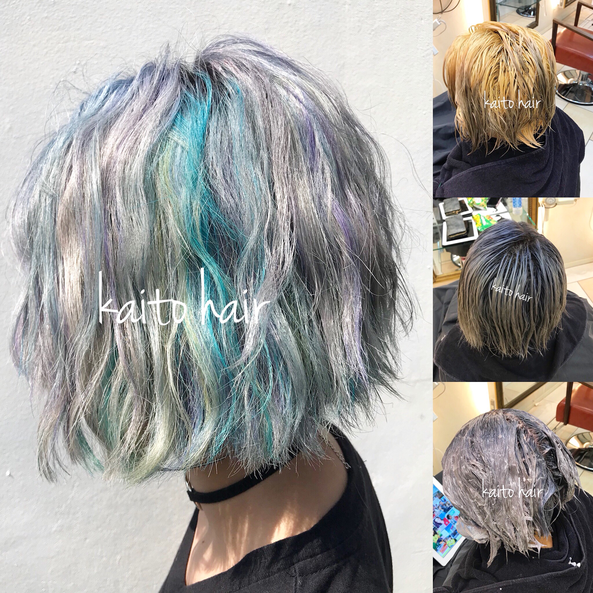 ライトグレーに染めてから1回シャンプーして塩基性カラーで染めてるんですね!!