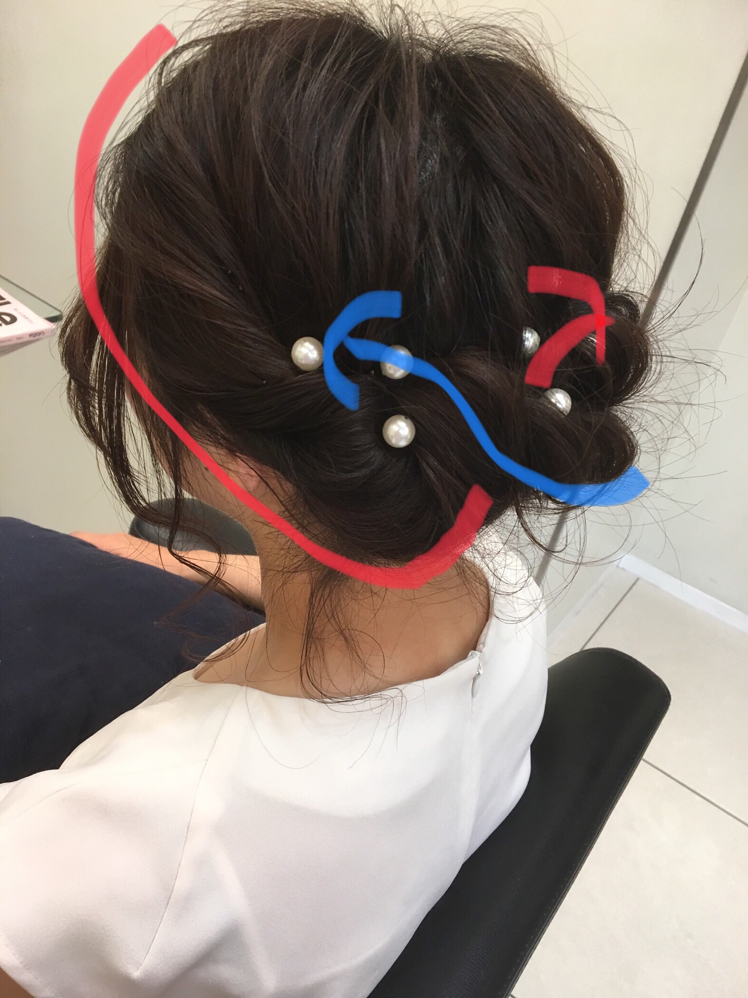フロント付近のトップの毛をねじりながらバックに持っていきます。