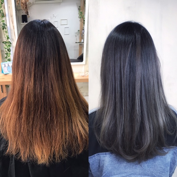 この方は以前にブリーチをしていて、そこから髪が伸びて毛先にブリーチが残った状態です。