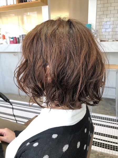 先ほどのパーマの仕上がりが半分くらい弱くなるイメージになると思います。