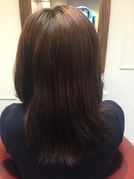 2ヶ月ほど前にアッシュベースのブラウンでカラーした方で、特に表面がいつも褪色しやすい方です。