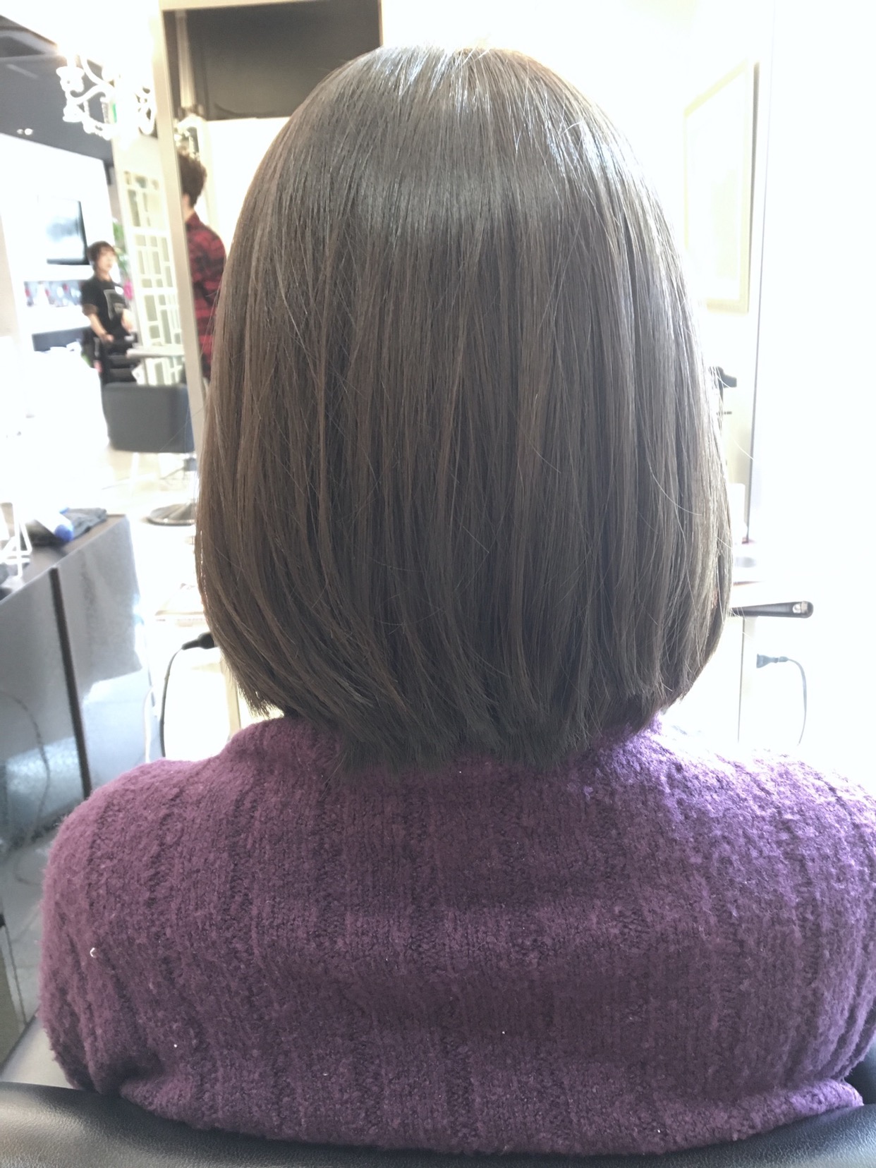 全体にストレートアイロンを全体に通すと、明るくなります。
