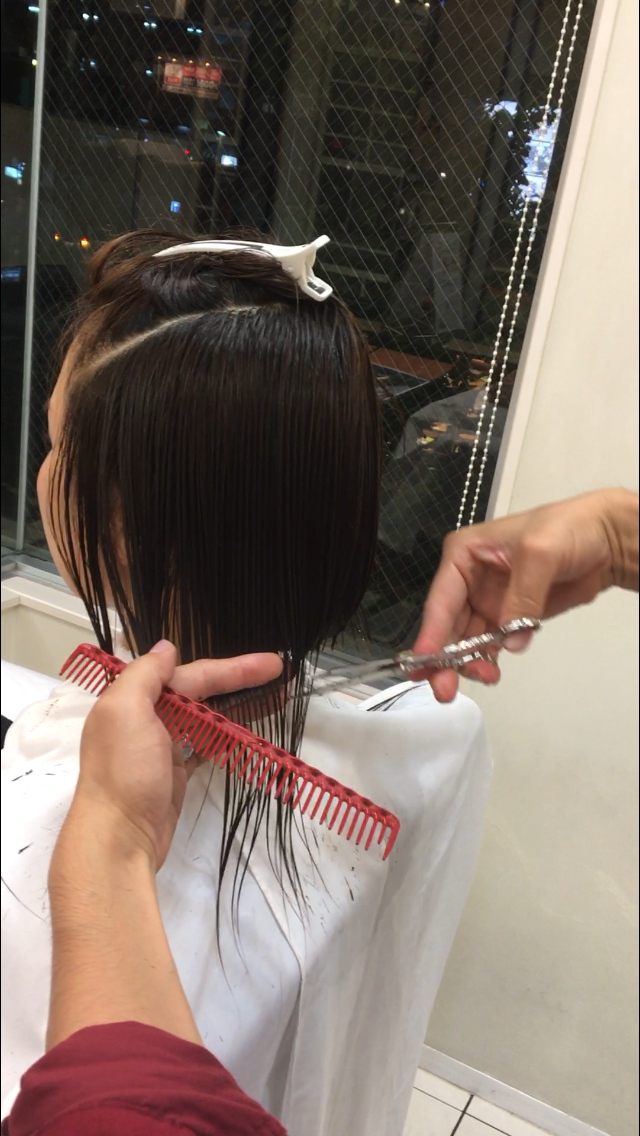・ロングで乾いた状態なので、ロングのクセが付いている、(切ったらストーン!ってなる)