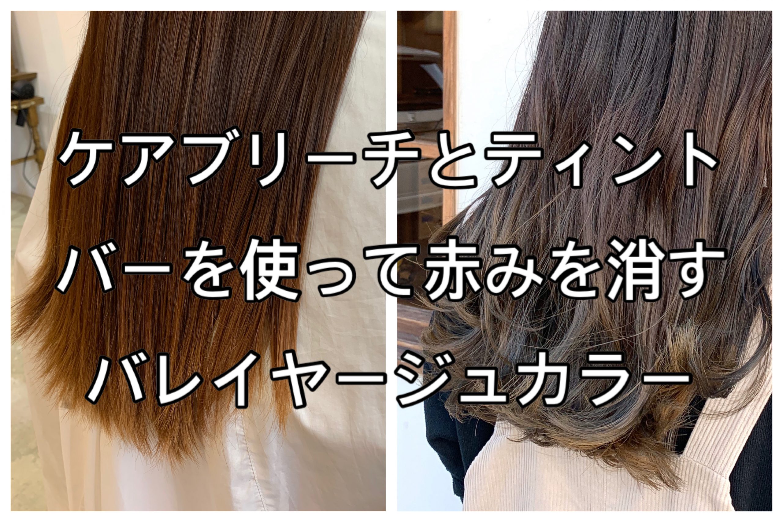 ケアブリーチとティントバーを使って赤みを消すバレイヤージュカラー