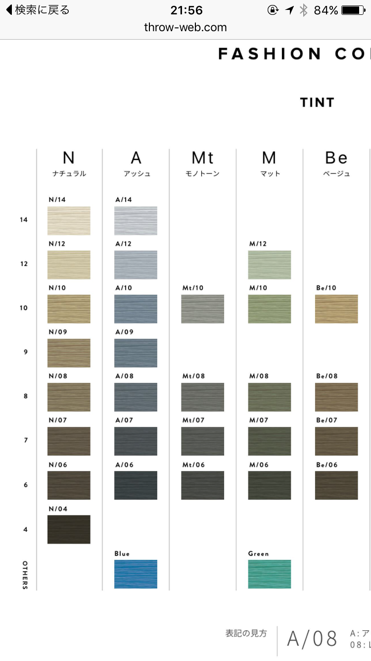 これをA(アッシュ)のカラー剤に少し混ぜるとより青みが強まり、オレンジ味を抹殺することが出来ます。