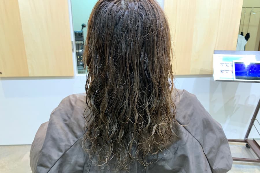 通常のアルカリパーマだと、だれてしまったり、毛先がばさびさになりますが、