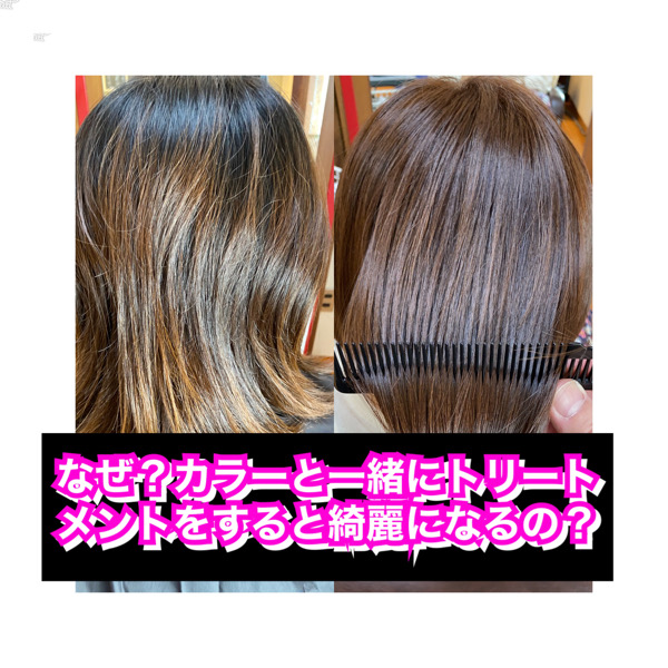 特にカラーのように髪の内部まで色味が入っていく薬剤と一緒にトリートメントをする事で、