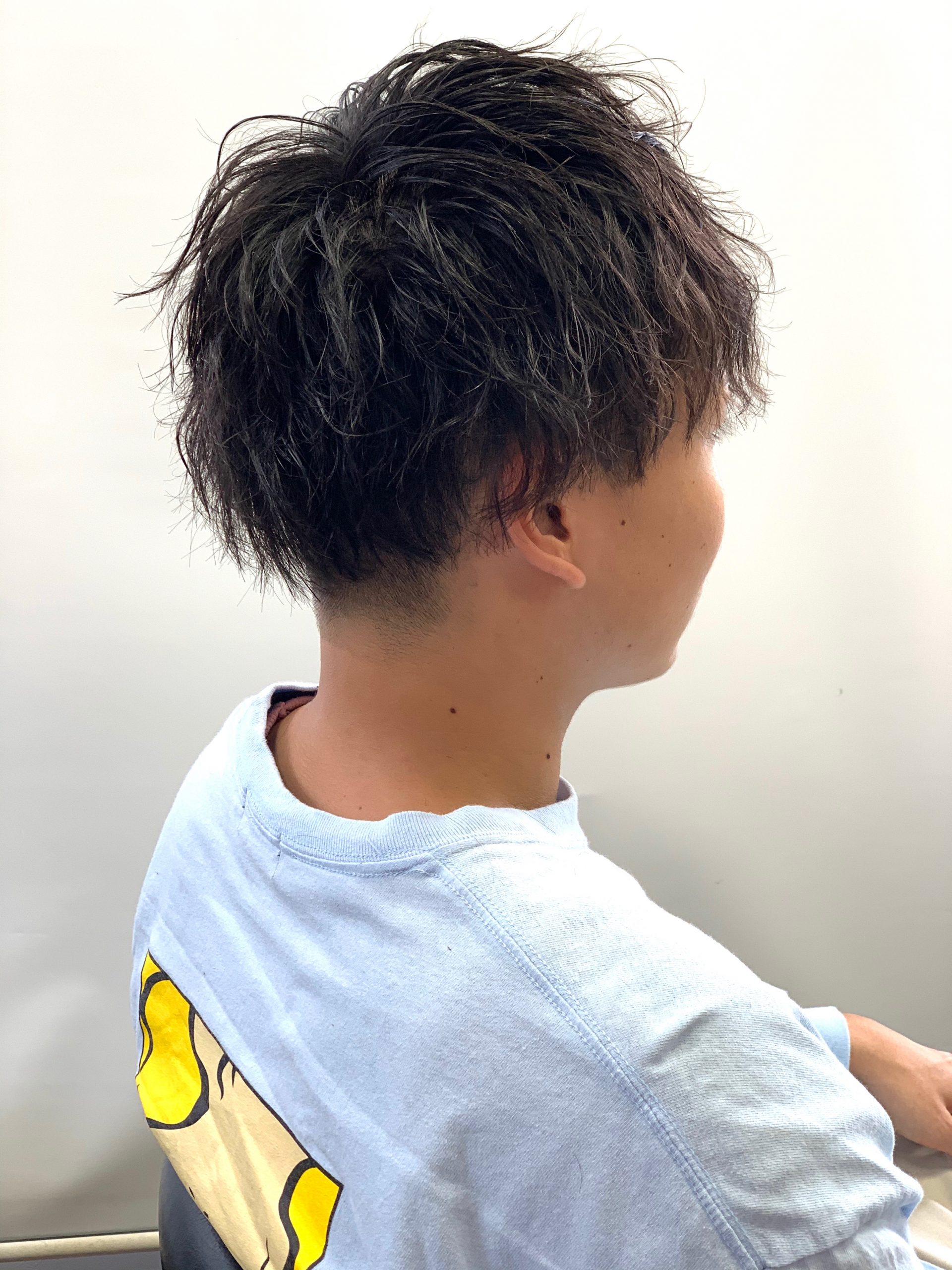 少しだけツイストを残したいとのオーダーだったので毛先に少し残る様にカットさせて頂きました。