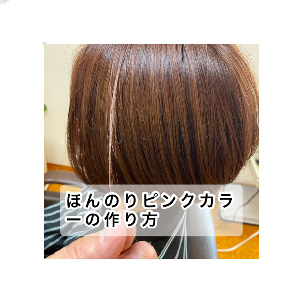 このようにトップが明るくなるように設定しておく染めた後での印象が華やかで落ち着きのある程よい明るめなカラーに見えます。