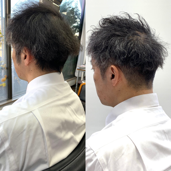 1ヶ月半前にツイストスパイラルパーマをかけているので1ヶ月半後にメンテナンスカットする事で収まり良くなります。
