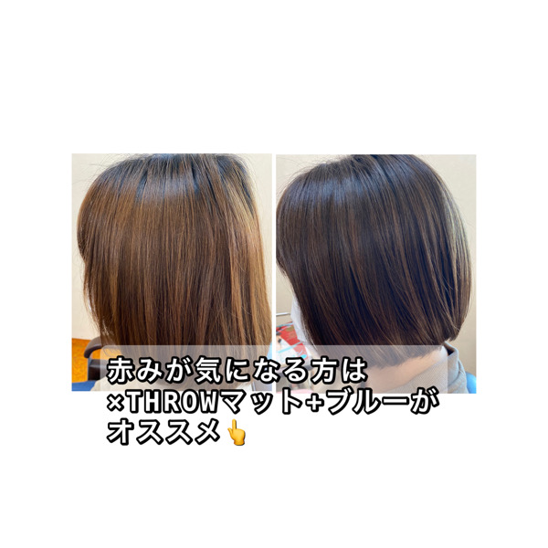 マットを入れると緑に触れ過ぎてしまいがちですが、×THROWブルーとのmix で程よくマットに触れ過ぎないで染められるので