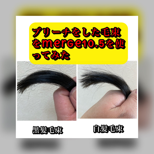 今回は、黒髪と白髪30%の毛束にブリーチを一回してTHROW mergeを使ったブルージュレシピを検証してみます。