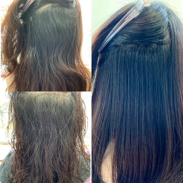 縮毛矯正をかけた方がダメージが少なくすみ半永久的に真っ直ぐの状態です。