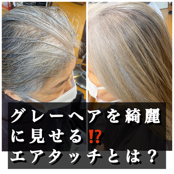 今回はエアタッチで白髪と黒髪とのコントラストをなくしてから、