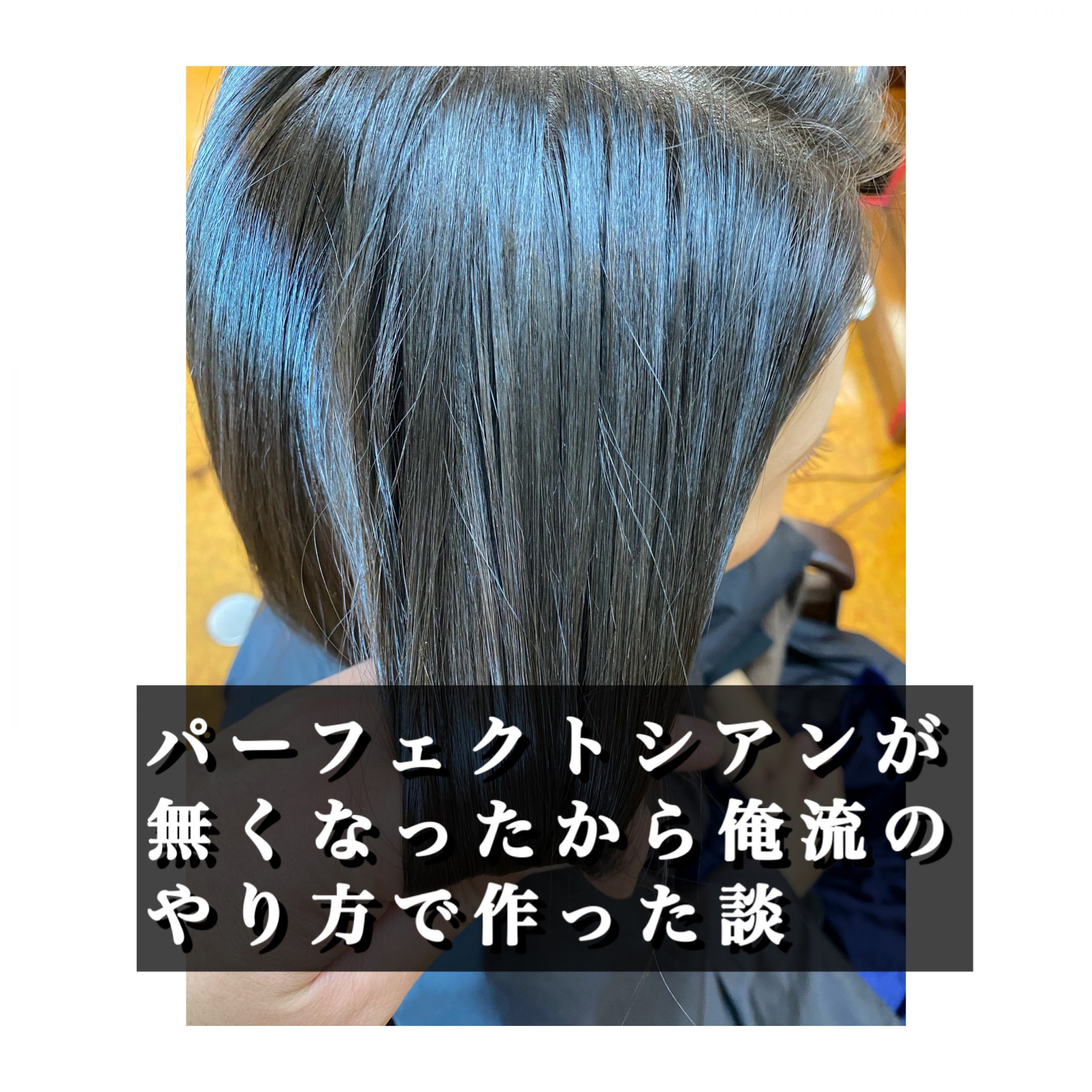 特に縮毛をした後に白髪も染めたい場合は特にパーフェクトシアンをミックスしておくと色が沈み過ぎないのでいいんです。