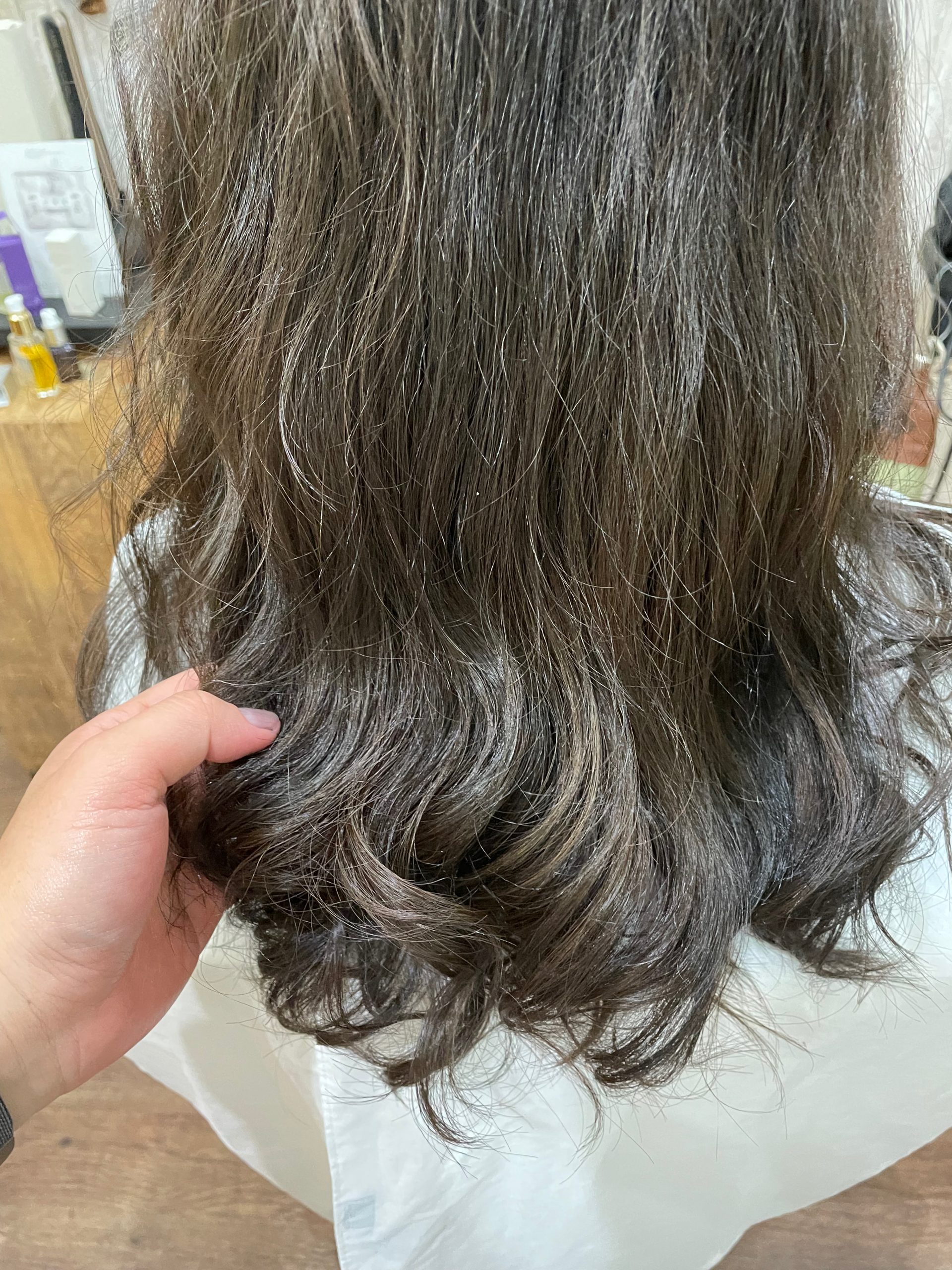 退色した髪の毛にスロウのスモーク。そしてV10にクリアを混ぜてカラーをします。