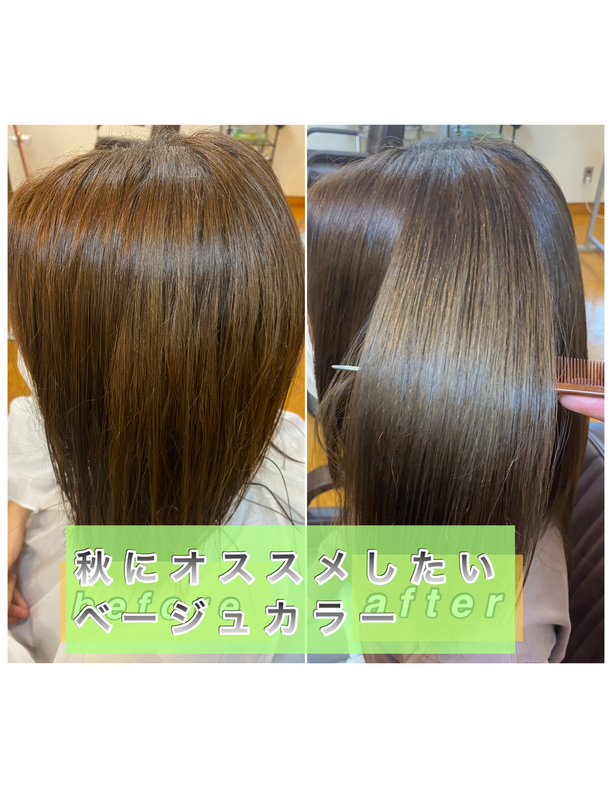 秋が深まると少しずつ気温も下がってきているので髪色的にも、寒色よりの色味が時期的に雰囲気が出ていい感じになりますので
