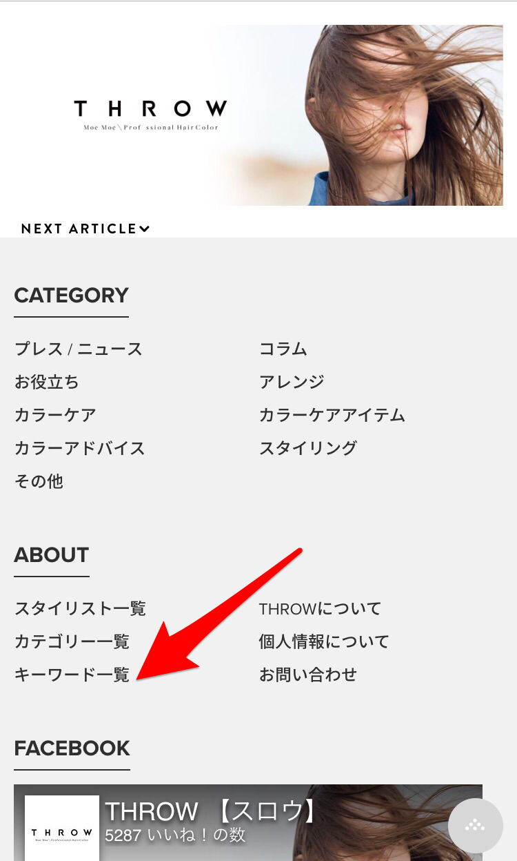 サイトの下にあるキーワード一覧