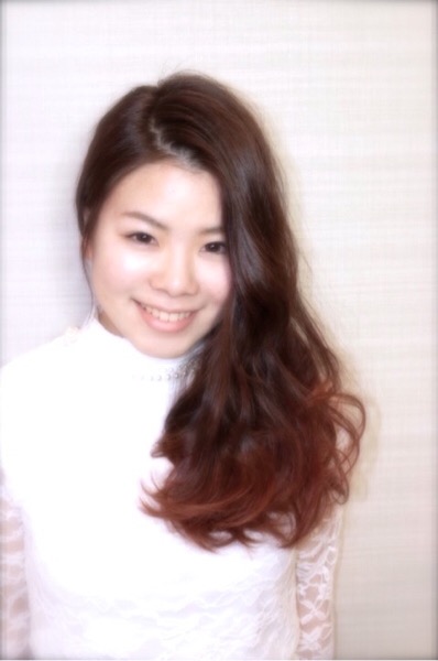 耳掛けと立ち上げ前髪が大人な雰囲気を出しつつ、ベリーピンクのグラデーションで女子度を加速させてます。。
