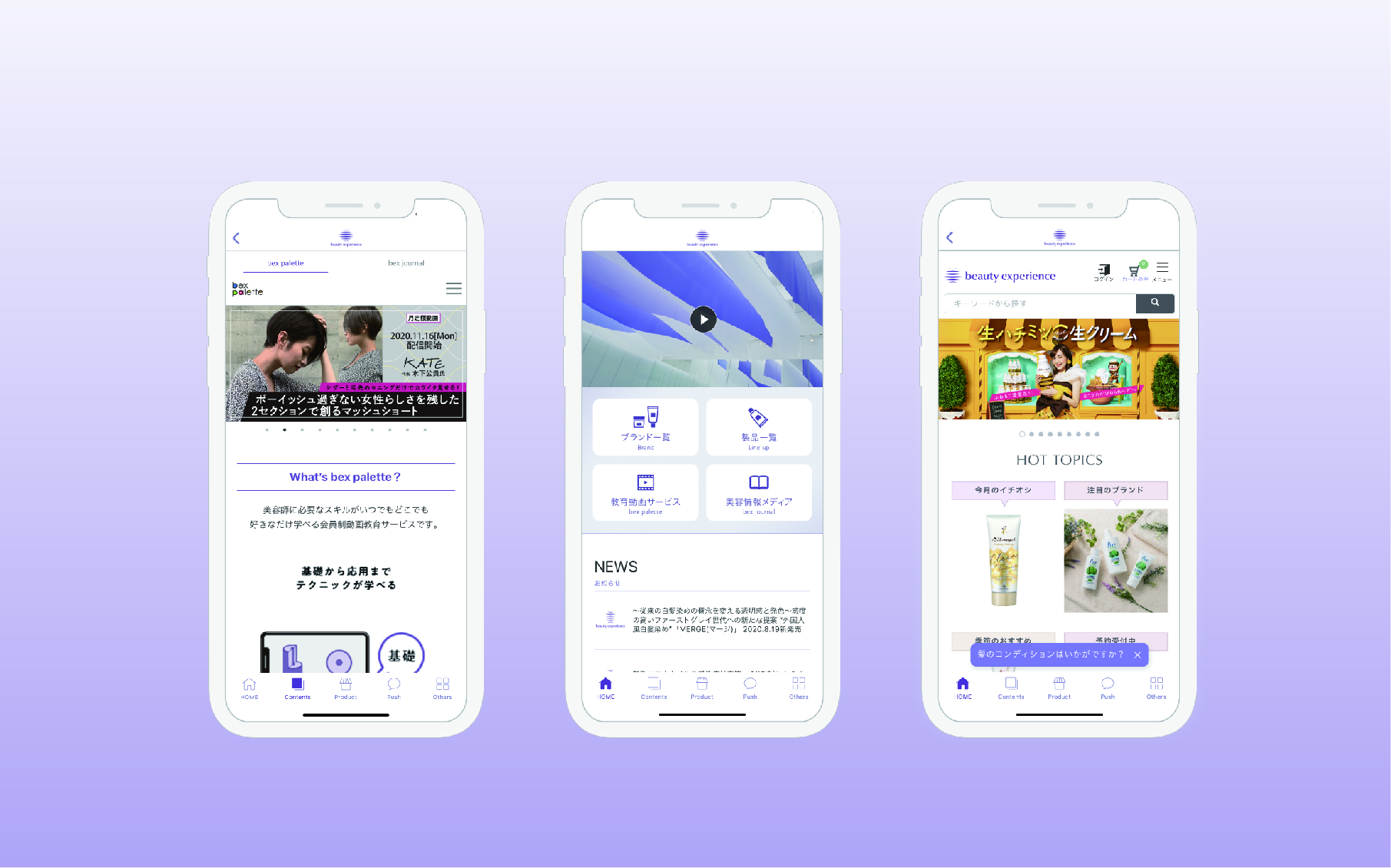 教育支援サービス、オウンドメディア、ECサイトなど、デジタルサービスをマルチに展開していました。『ビューティーエクスペリエンスアプリ』は、分散されていた各サービス・Webコンテンツなどを1つに集約させたアプリです。