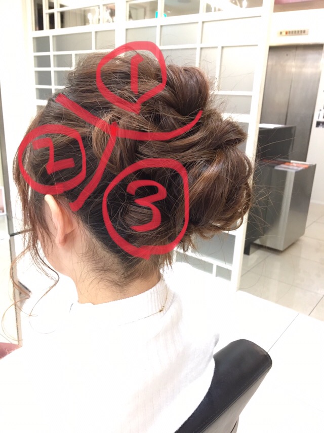ここから、シニヨンにしたり、まとめたり、夜会巻きにしたり決めていきます。