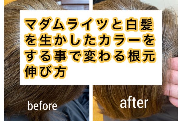 マダムライツと白髪を生かしたカラーをする事で変わる根元伸び方