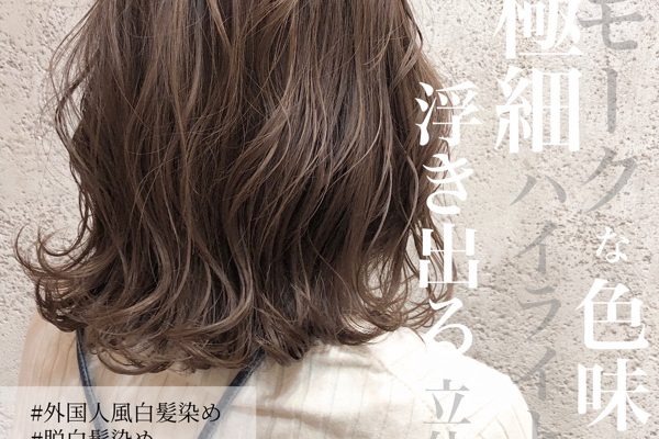 スモークなベースに極細ハイライトを合わせて『浮き出る』白髪隠しハイライトカラー