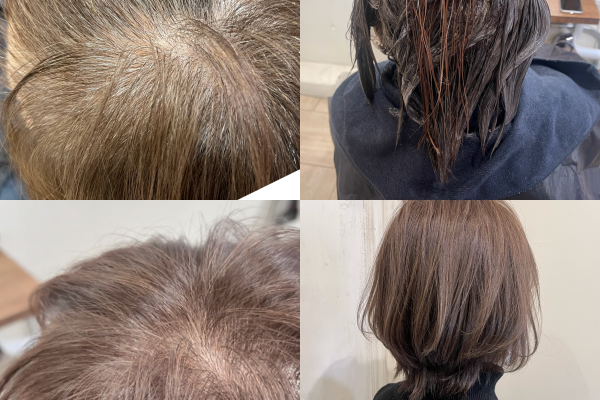 白髪も染まるハイライトを活かしたヘアカラーで赤味を抑えるカラーレシピ