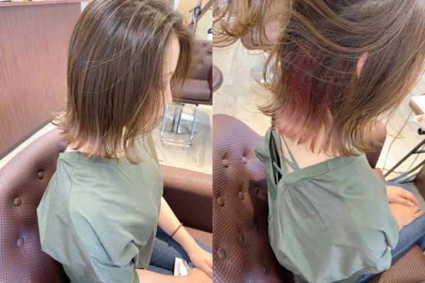 隠れたインナーカラーが可愛いアッシュベージュのヘアカラー