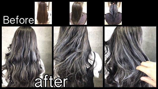 シルバーホワイトのハイライトがお洒落な外国人風カラー