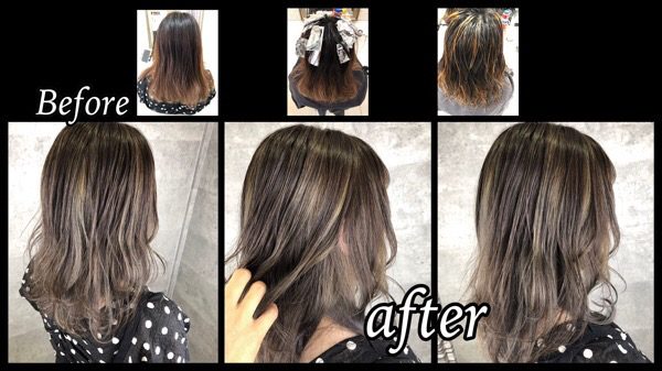 バレイヤージュベースの土台にミルクティーグレージュで染めたら綺麗!