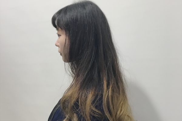 地毛の黒髪からブリーチによるグラデーションカラー!
