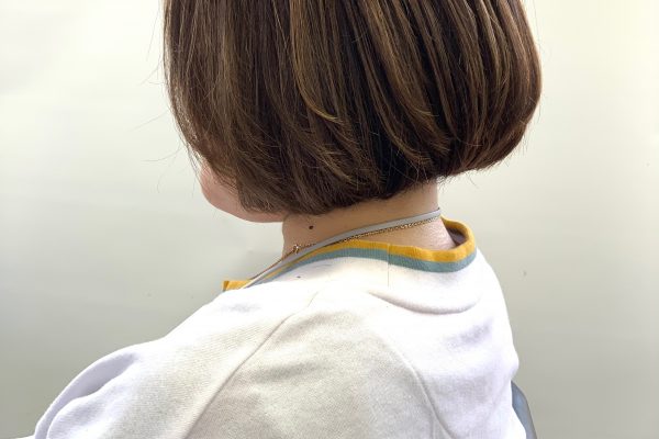 赤味を抑えたハイライトグレージュカラーがボブスタイルにピッタリ