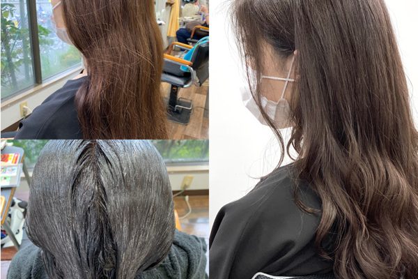 bブリーチで作る赤味が少ないハイライトミルクティーベージュ