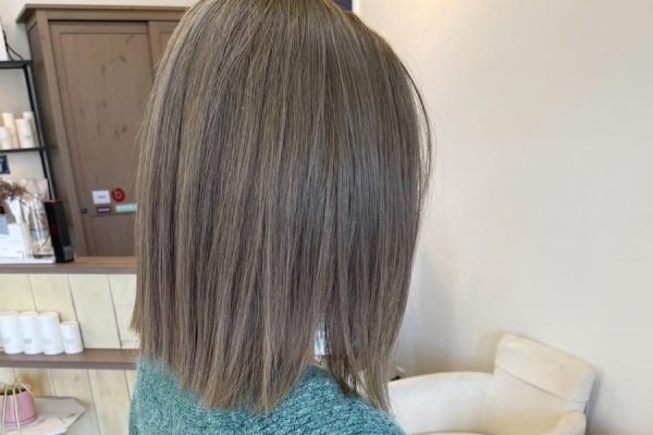 スロウで染めるグレーがかったバレイヤージュカラー