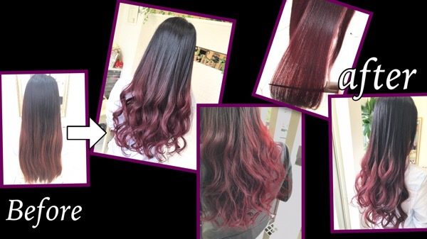 ブリーチ毛にティントバーで染めるピンクレッドカラー