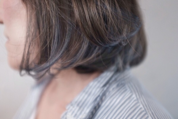 ボブに似合うポイントのブルーインナーカラーがお洒落