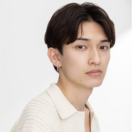 ドライヤーで熱を与えながら前髪の根本を立ち上げ、ストレートアイロンで毛先をワンカールして後ろに流しておきます。