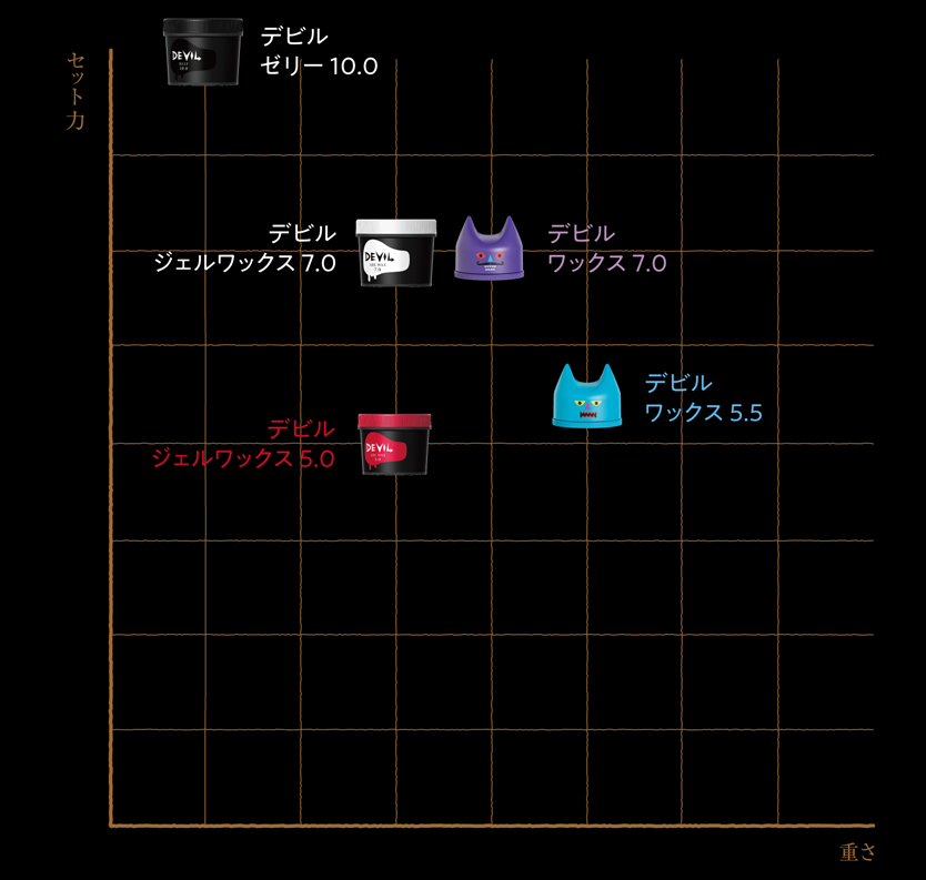 ロレッタシリーズとデビルシリーズのそれぞれの使い心地がひと目でわかるマップです。