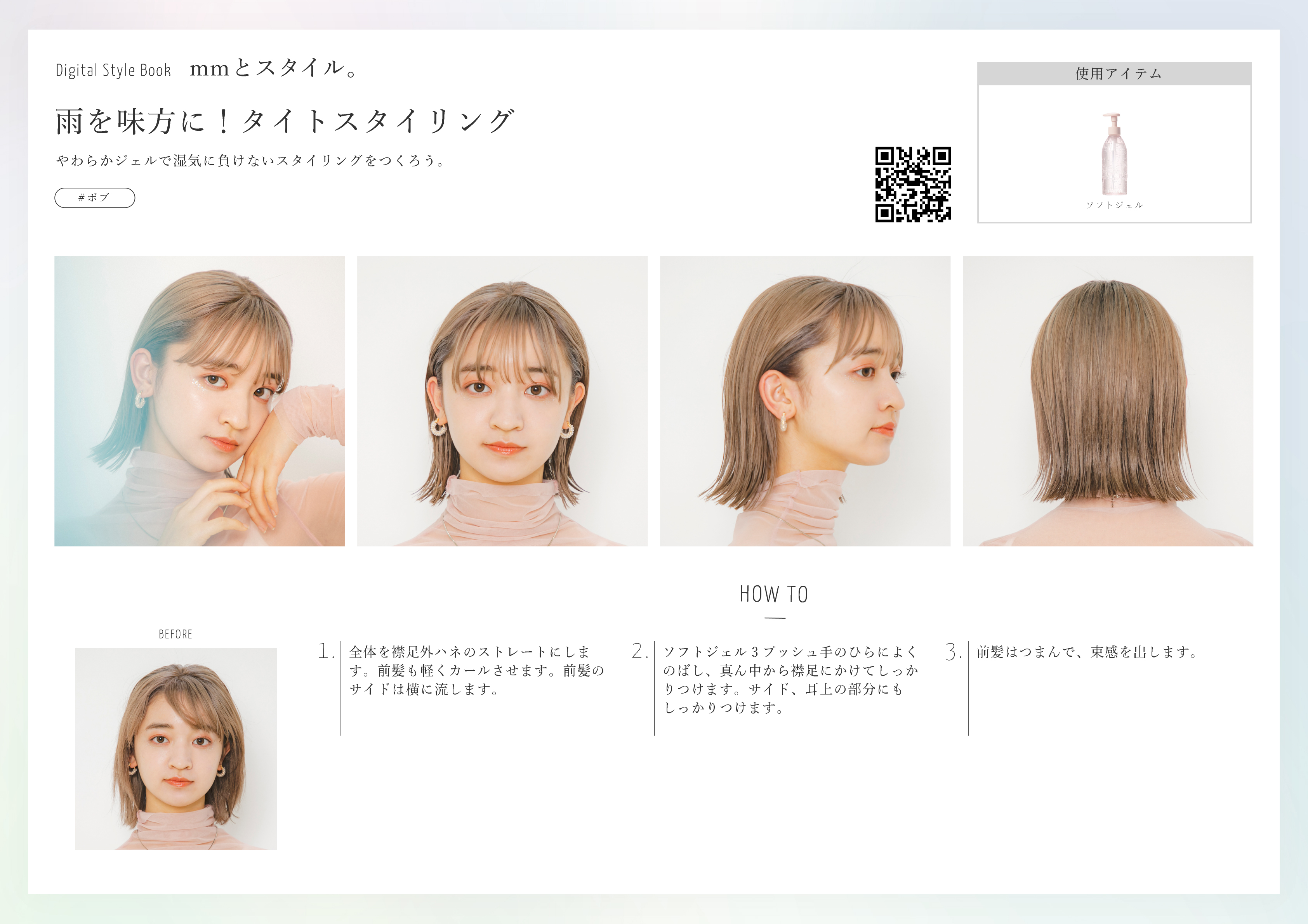 やわらかジェルで湿気に負けないスタイリングをつくろう。