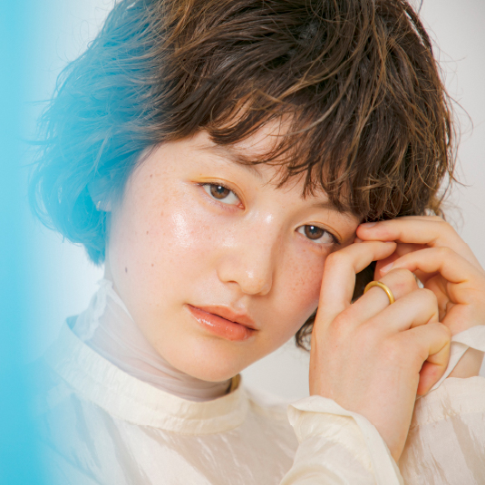 前髪は肌が見えるように作ります。後ろも毛束を作るイメージで、立体感を出します。