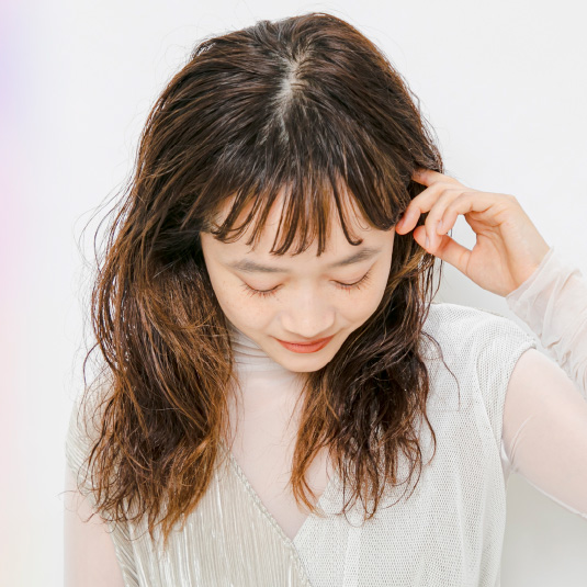 顔まわりや前髪もオイルモイストで質感を整えます。