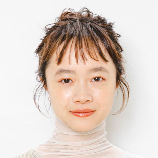 ソフトジェルとオイルモイストを2プッシュずつ手のひらに出しよく混ぜ合わせてからアレンジしやすい質感にするために、髪全体によく馴染ませます。手に余ったスタイリング剤を前髪と顔回りにつけてニュアンスを出します。