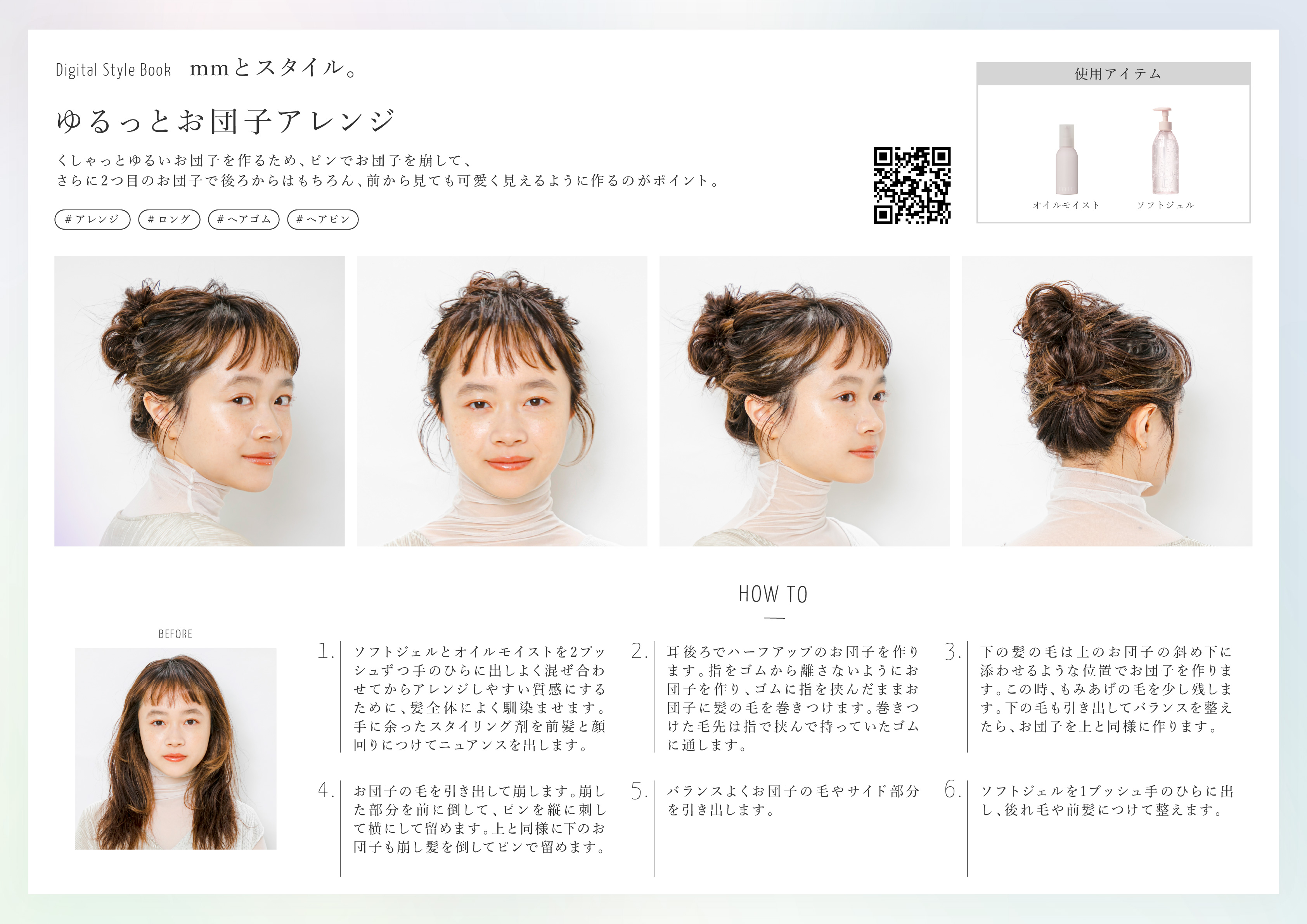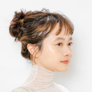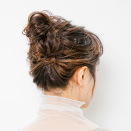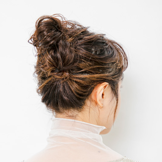 くしゃっとゆるいお団子を作るため、ピンでお団子を崩して、さらに2つ目のお団子で後ろからはもちろん、前から見ても可愛く見えるように作るのがポイント。