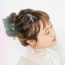 お団子の毛を引き出して崩します。崩した部分を前に倒して、ピンを縦に刺して横にして留めます。上と同様に下のお団子も崩し髪を倒してピンで留めます。