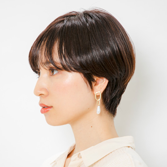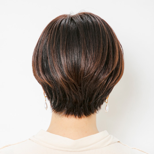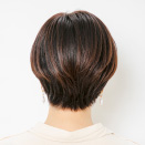 頭を三等分にして、下から一段目は首に添わせて抑えるようにつけます。膨らみやすい耳周りもしっかり抑えます。耳にかかるところは耳にかけてください。二段目もハチ周りにしっかりオイルをつけます。表面はふんわりしたいので手ぐしで整えます。